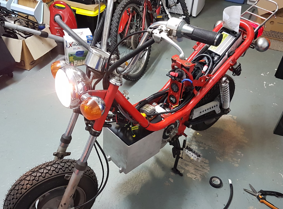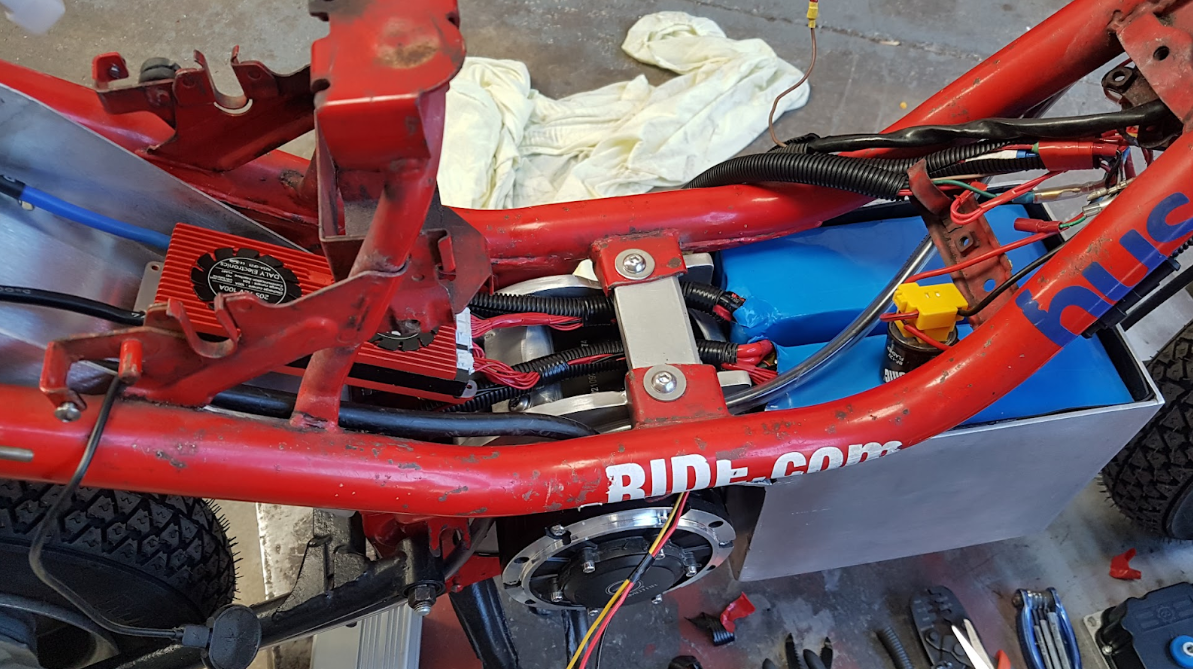1.76kWh custom battery pack made from reclaimed Tesla 18650 cells.